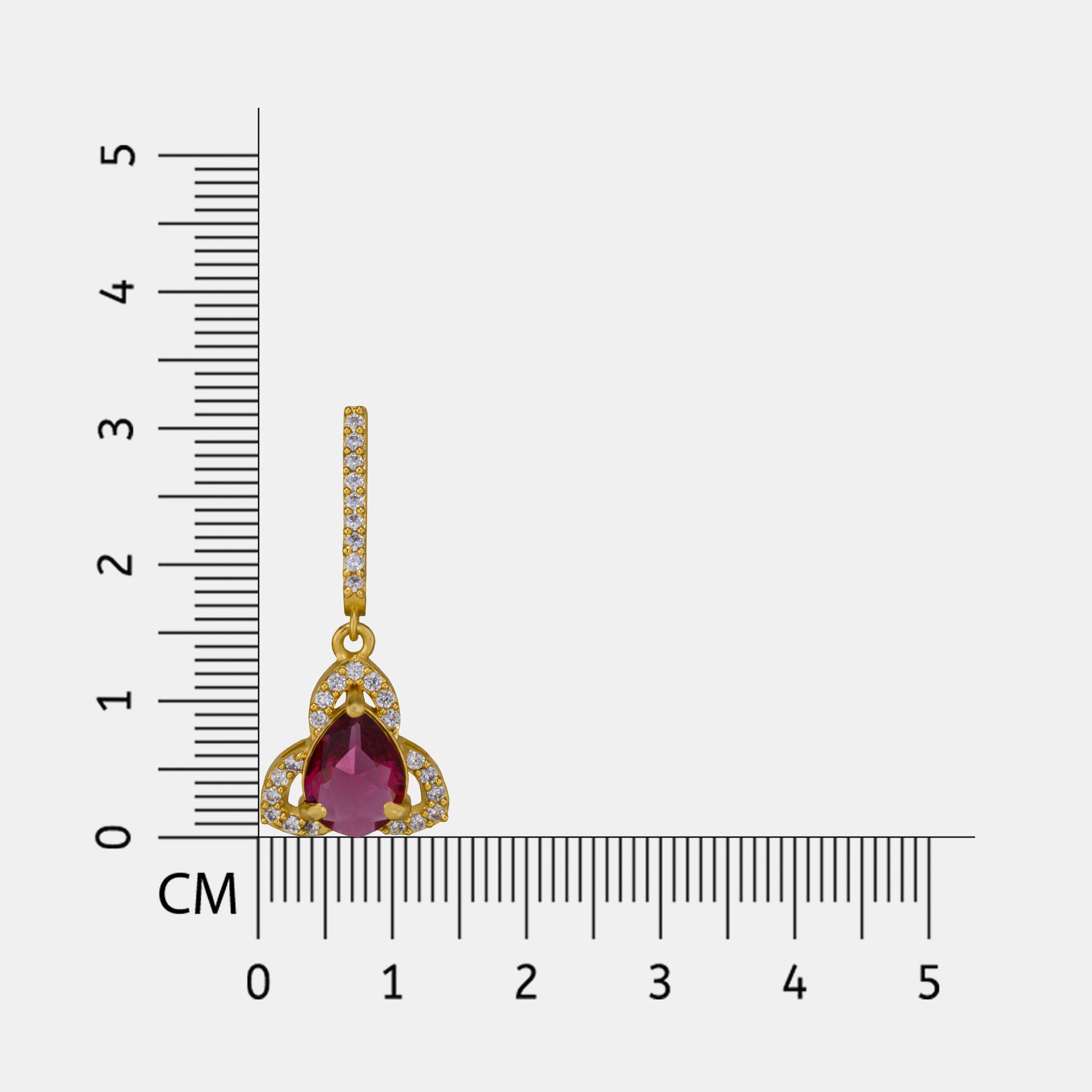 Crafted in gold-plated finish, these earrings feature a teardrop-shaped ruby-colored stone surrounded by shimmering zircons