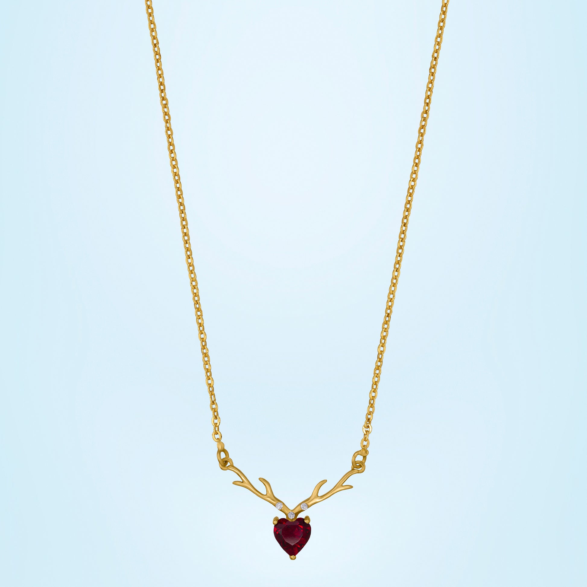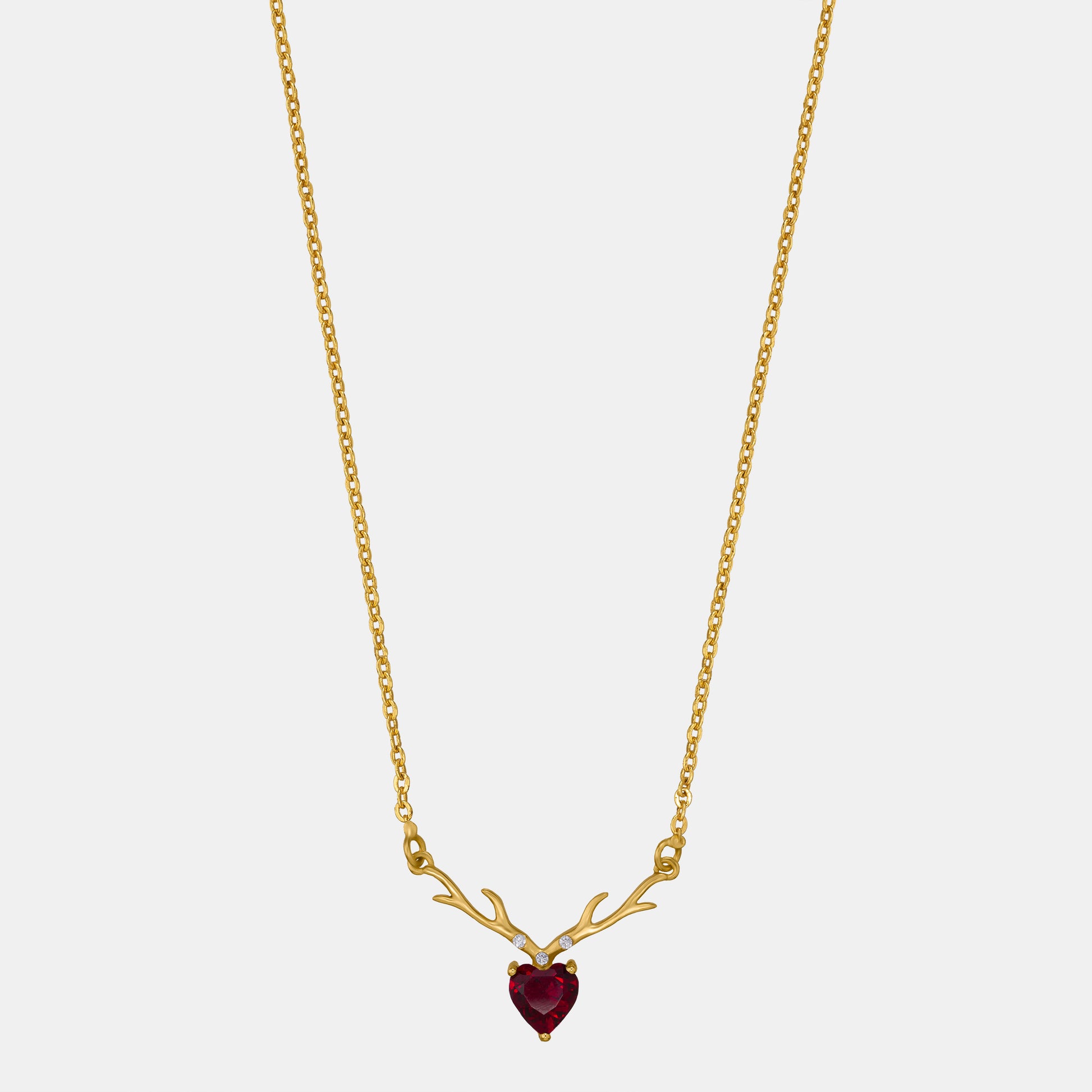 This half white gold necklace features an antler-inspired design, centered with a heart-shaped zircon.