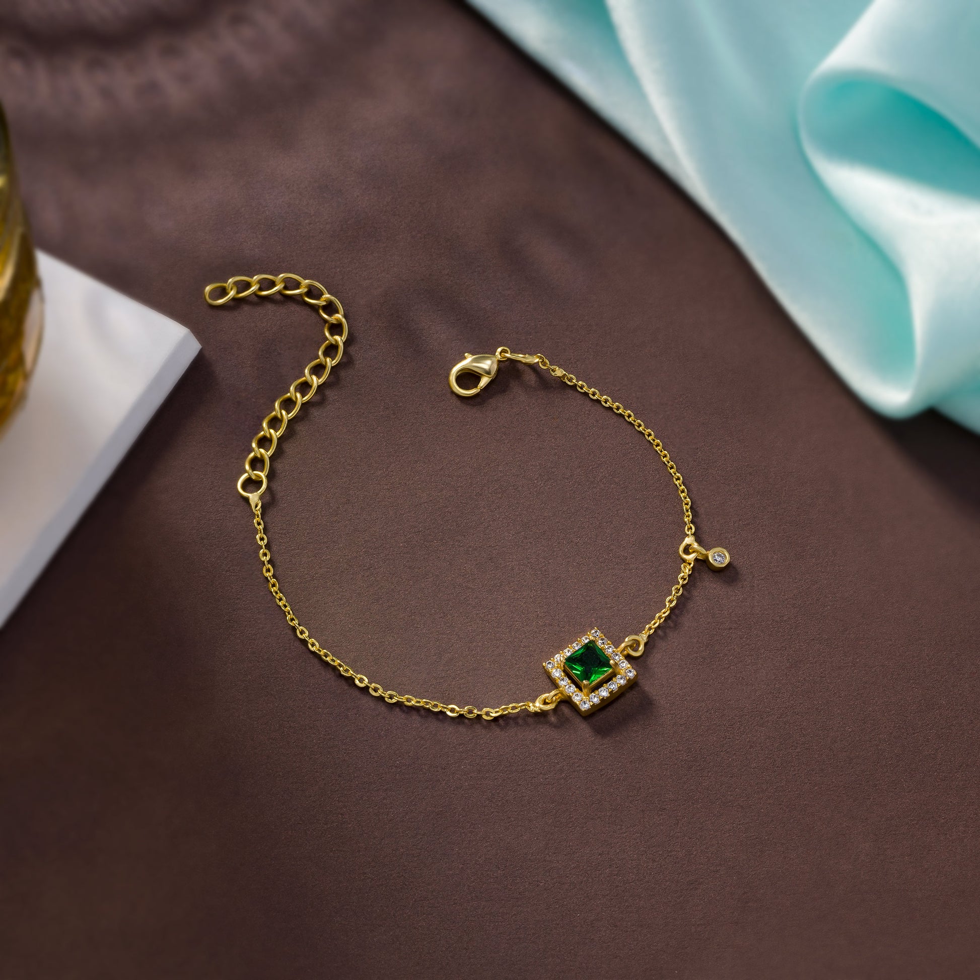 Dazzling gold-plated bracelet featuring a royal stone at the center, surrounded by sparkling zircons