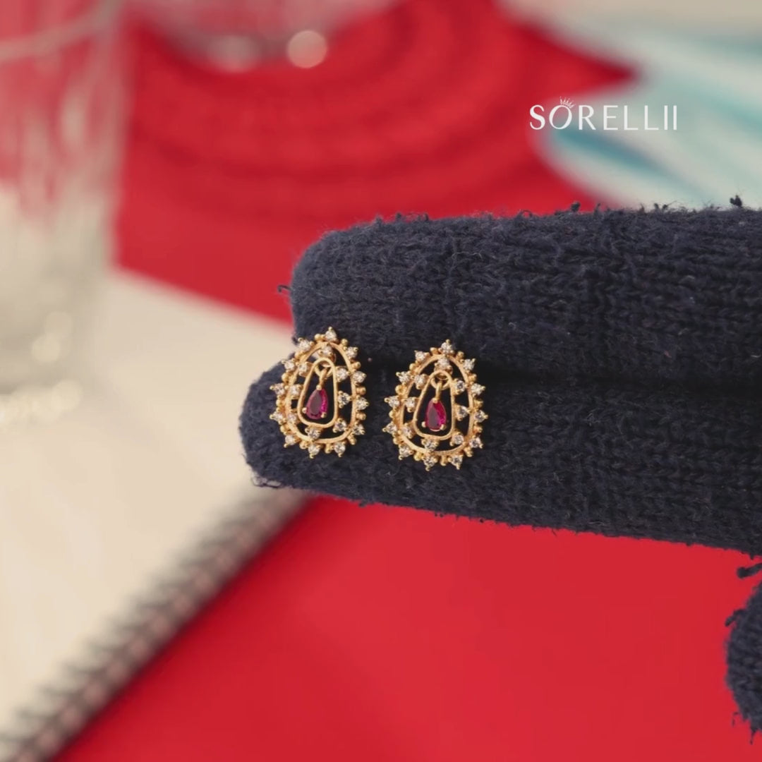 Earrings feature a delicate flower motif, set with vibrant pink cubic zirconia stones.