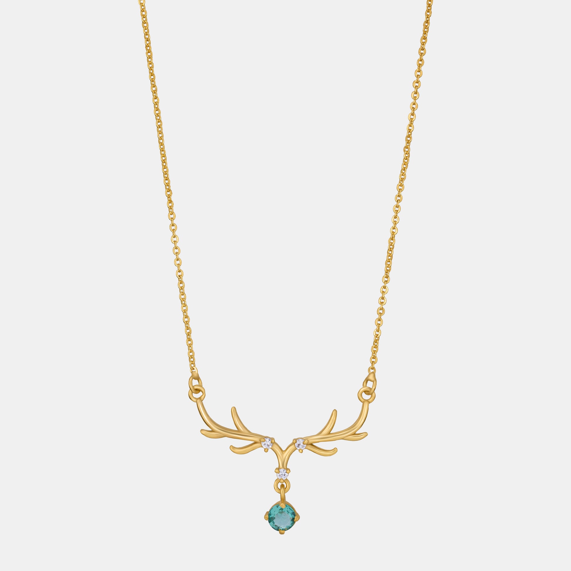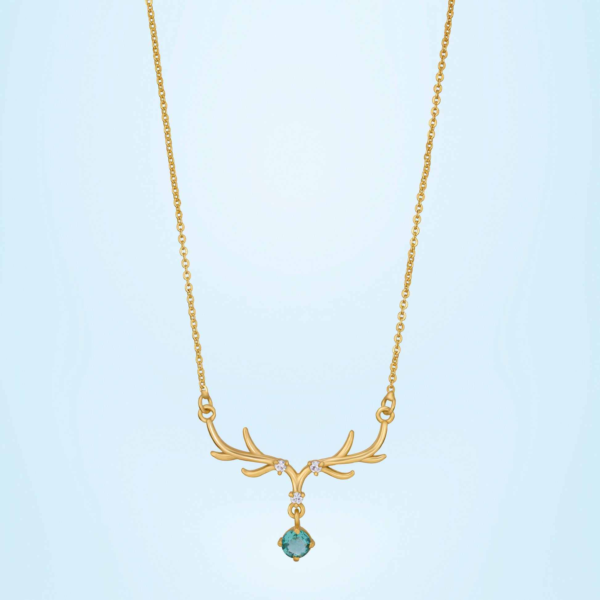 Inspired by the graceful antlers of a deer, this necklace features intricate detailing accented with sparkling cubic zirconia stones and a bold ruby-red center stone, adding a touch of royal allure.