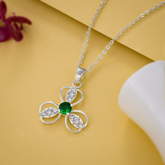 Silver Emerald Clover Pendant