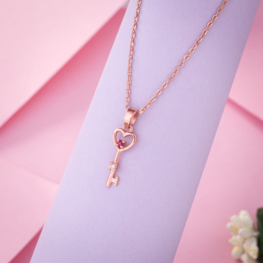 Rose Gold Key Heart Pendant