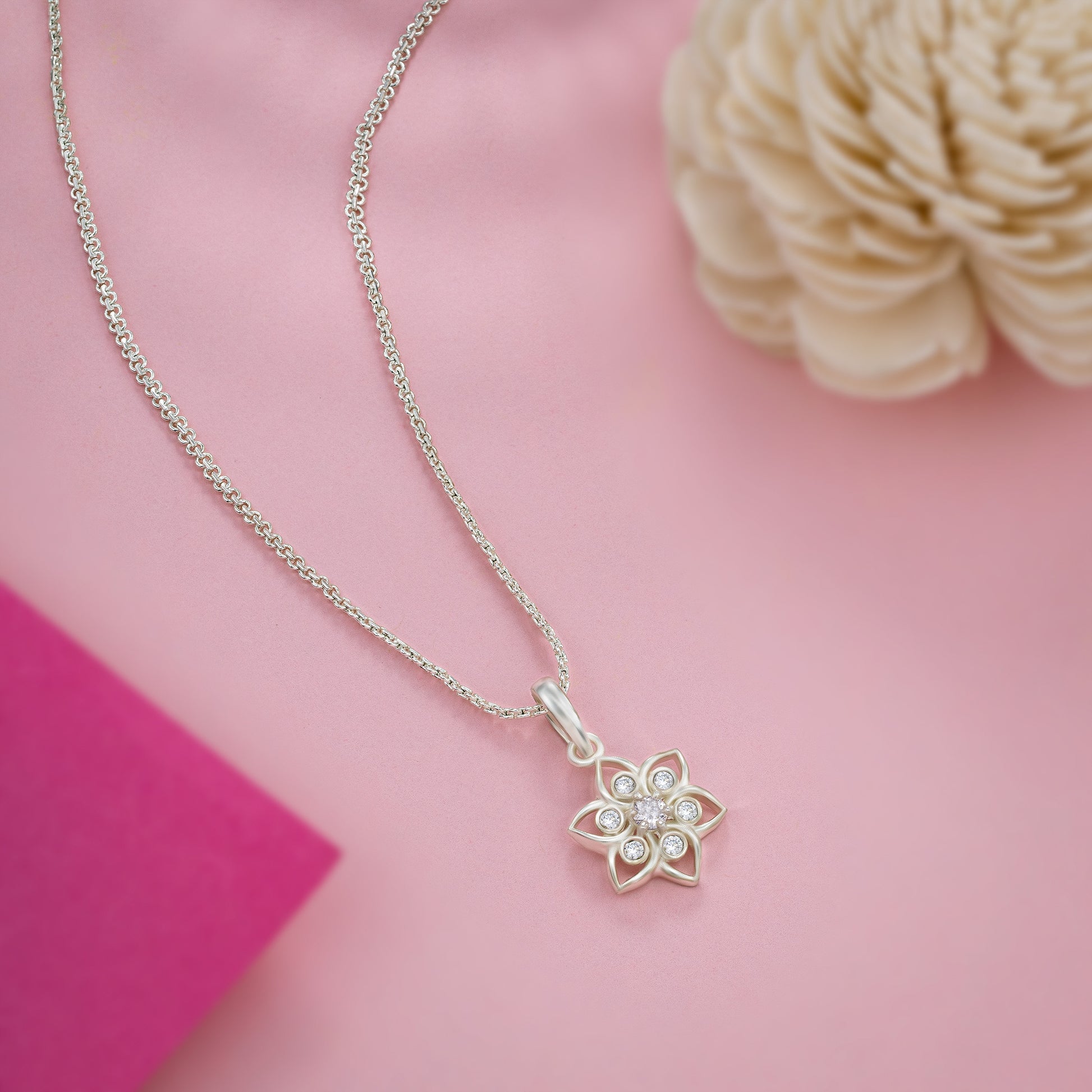 Silver Celestial White Blossom Pendant